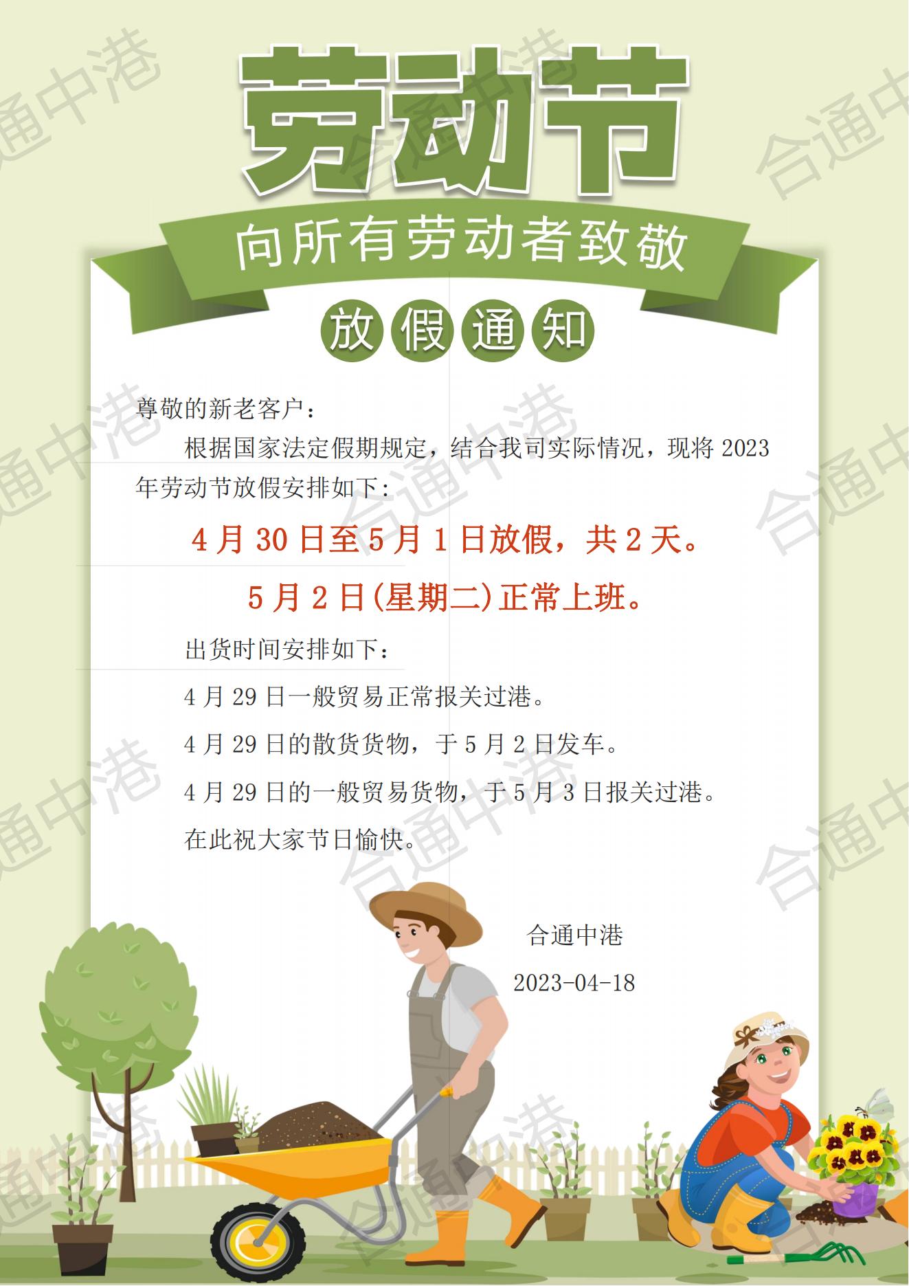 2023勞動節(jié)放假通知